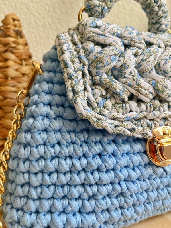Sac à main en fil eco responsable comprenant du lycra vendu avec chainette doré.